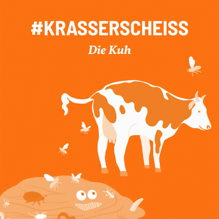 Kuhdung ist voller Klein- und Kleinstlebewesen, die den Dung zersetzen und damit dem Boden Nährstoffe zuführen. Ein Kuhfladen im Ökolandbau kann bis zu 156 Arten beherbergen – ein Musterbeispiel für Artenvielfalt.