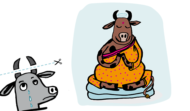 Hörner passen nicht in eine Landwirtschaft, die möglichst viel Ertrag auf möglichst wenig Fläche erzielen will. Statt der Kuh einen Stall zu bauen, der ihren Bedürfnissen gerecht wird, wird die Kuh auf vielen Höfen kurzerhand dem Stall angepasst. Heutzutage werden fast alle Kälbchen ein paar Wochen nach der Geburt enthornt oder kommen durch Züchtung bereits hornlos zur Welt. Kaum zu glauben: Aktuell sind bereits über 90 Prozent der Kühe in Deutschland ‚oben ohne‘. Nicht bei Demeter: Nur der älteste Bioverband setzt sich für den Erhalt von Kühen mit Hörnern ein.