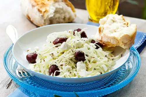 Reichlich frischen Schnittlauch und einen Teelöffel Kümmel darüberstreuen und den Kuchen 30 Minuten backen. Den noch warmen Rahmkuchen in Stücke schneiden und servieren.