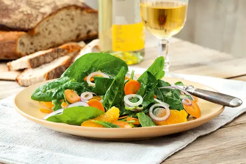 Blattspinat waschen und grob hacken. Mit in die Pfanne geben und untermengen, bis er zusammenfällt. Pfanne danach von der Herdplatte nehmen. WildeWeideKuh Kamilla dazugeben und vermengen. Backofen auf 180 Grad vorheizen.